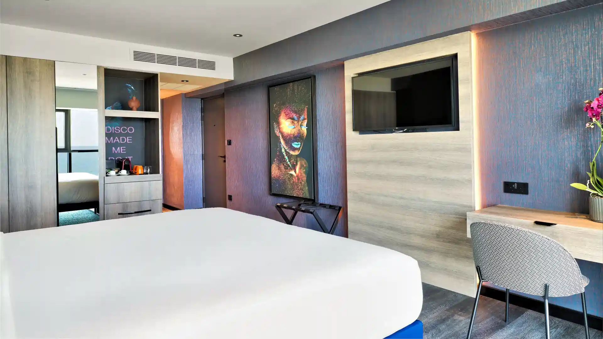 Savour the opulence of our Executive Room, which offers a view of the Mediterranean Sea. The accommodation has air conditioning, a deluxe mattress, a marble en suite bathroom, remote-controlled lights and drapes, opulent amenities, a Smart TV, a Nespresso machine, a lap-top safe, free WiFi and access to the business lounge. It can house up to two visitors.