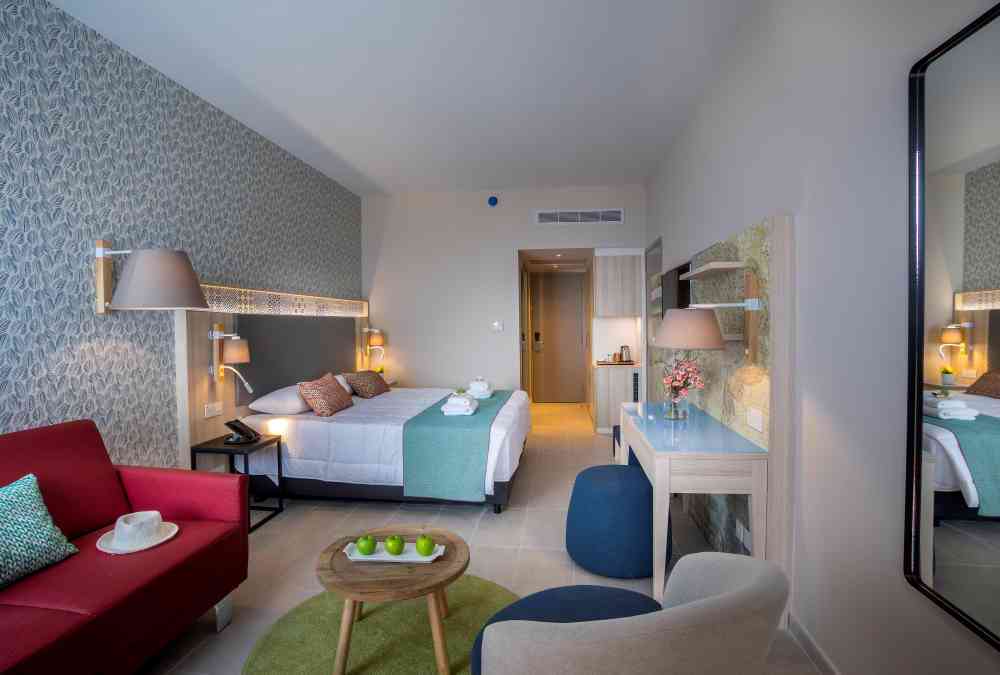 Designed and furnished for two adult guests, the Family Sea View rooms can accommodate up to two children in a double sofa bed. They offer private balconies and bathrooms with either bathtubs or walk-in showers. The romantic views of the sea make the stay even more pleasant.